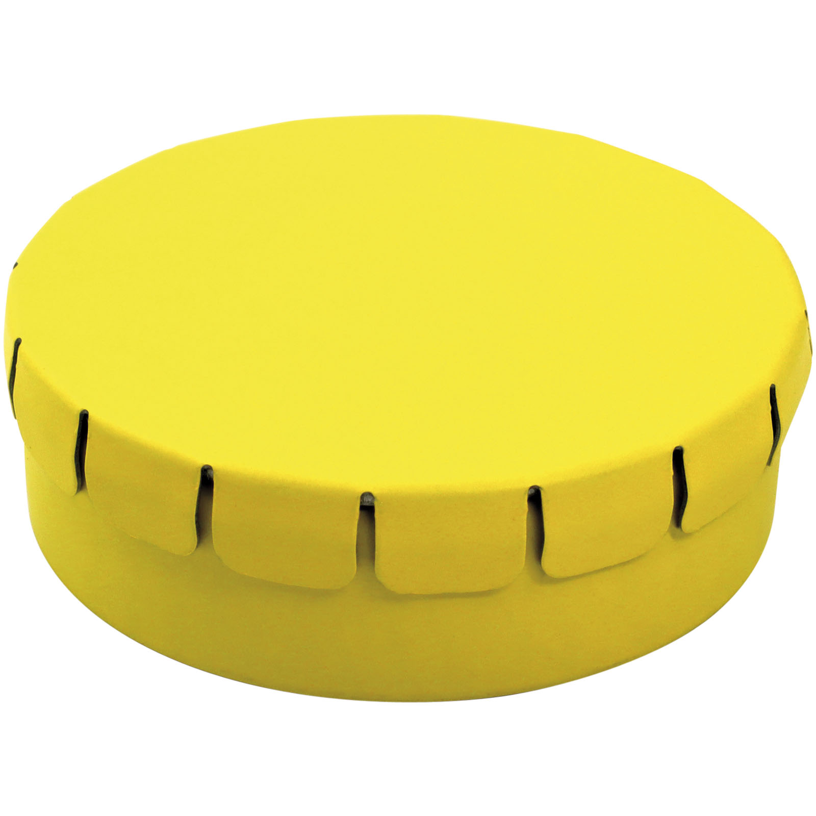 Caramelos de fresa con forma de corazón en recipiente de estaño con sencillo sistema de apertura a presión. Se pueden pedir en una amplia gama de colores y pueden tener diferentes rellenos: menta, menta extrafuerte, menta sin azúcar, pastillas de fruta, de fresa con forma de corazón, canela, limón y menta o bombones. Se puede grabar con una impresión digital a todo color en la tapa.