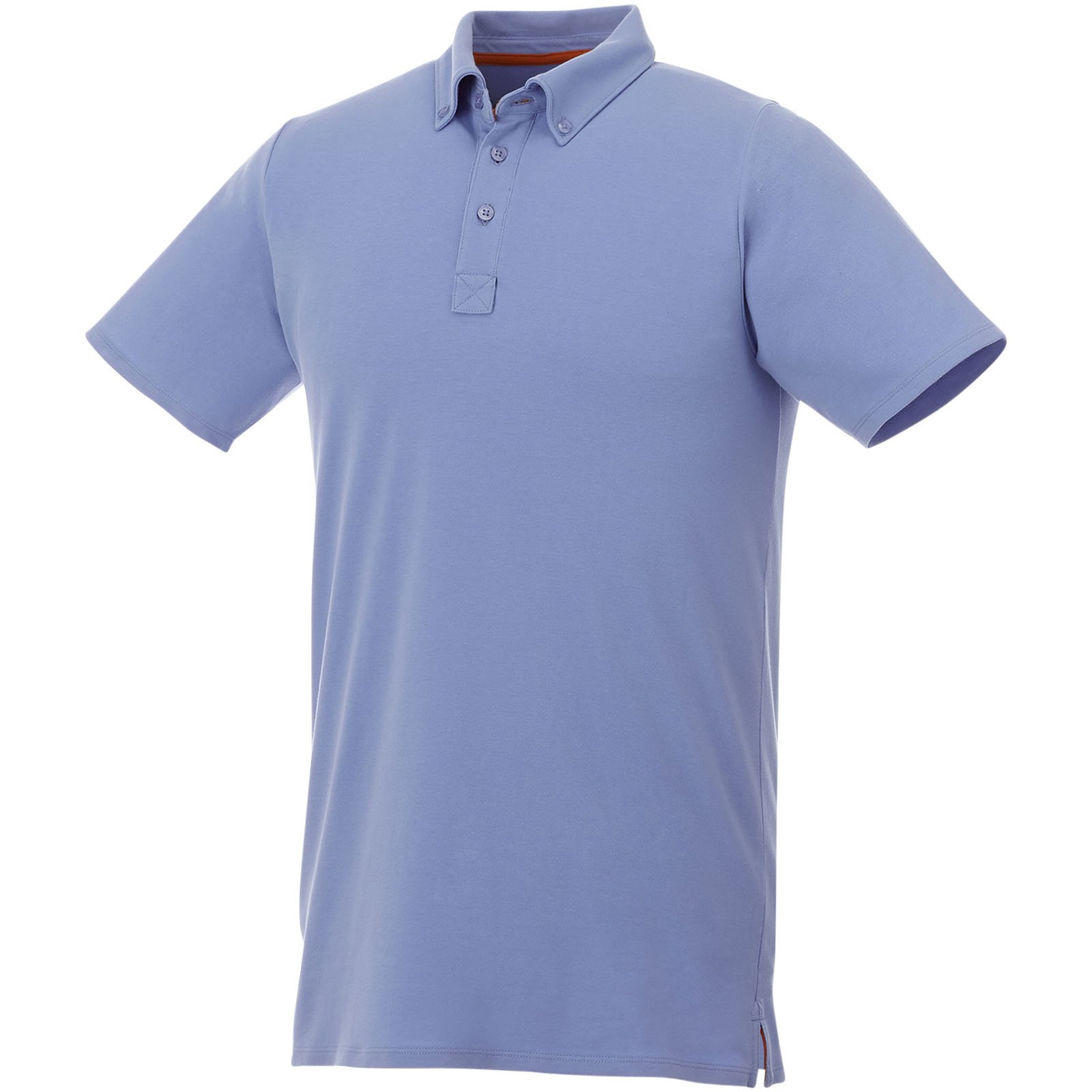 Cuello en tejido liso. puños de punto liso. Ribetes de color contrastado en cuello y mangas. tapeta de dos botones. Botones del mismo color grabados. Etiqueta principal en transfer para mayor comfort.