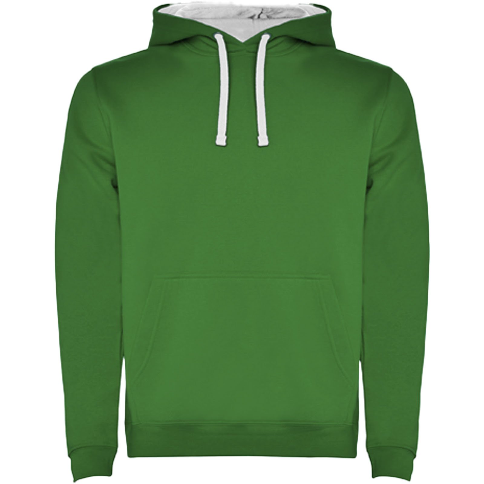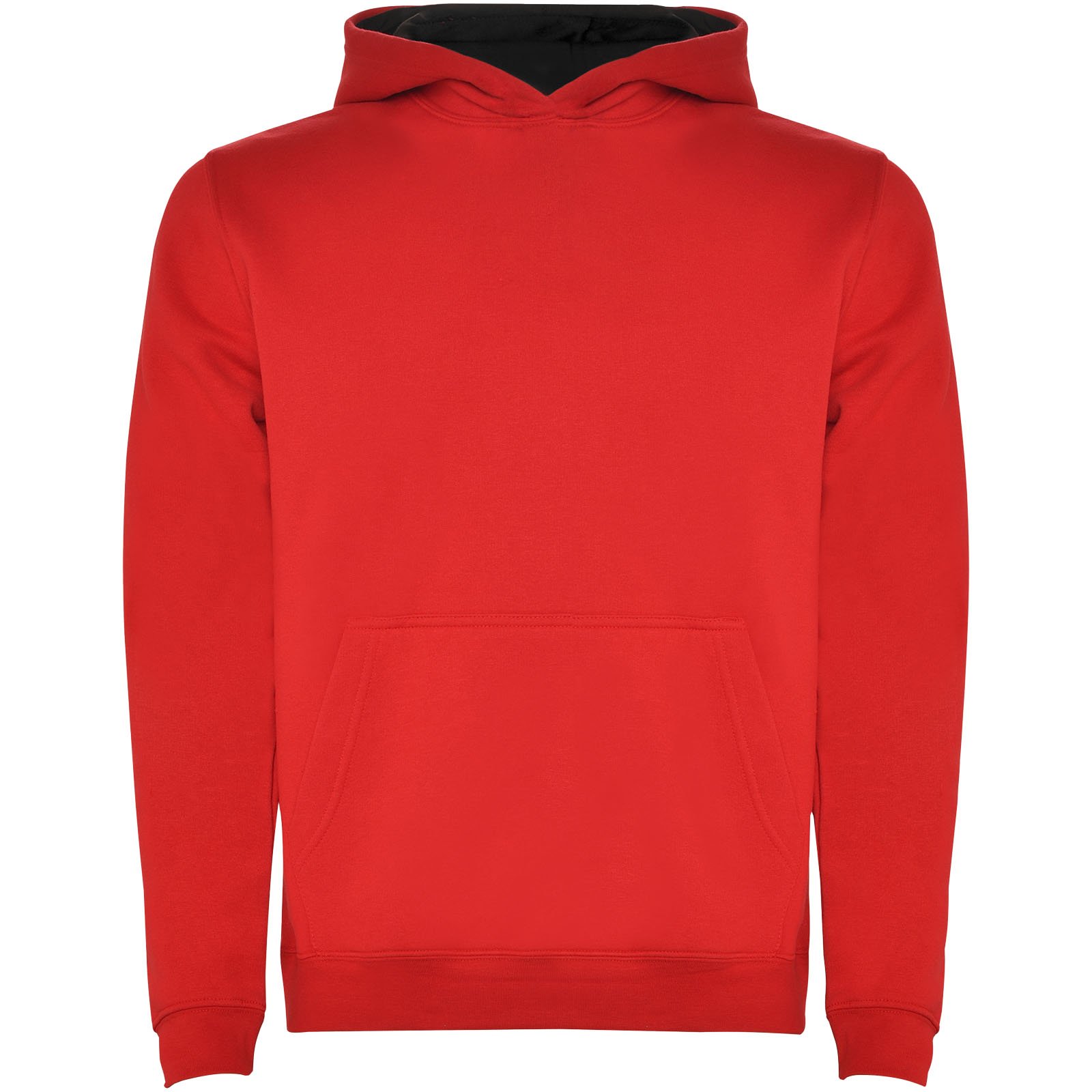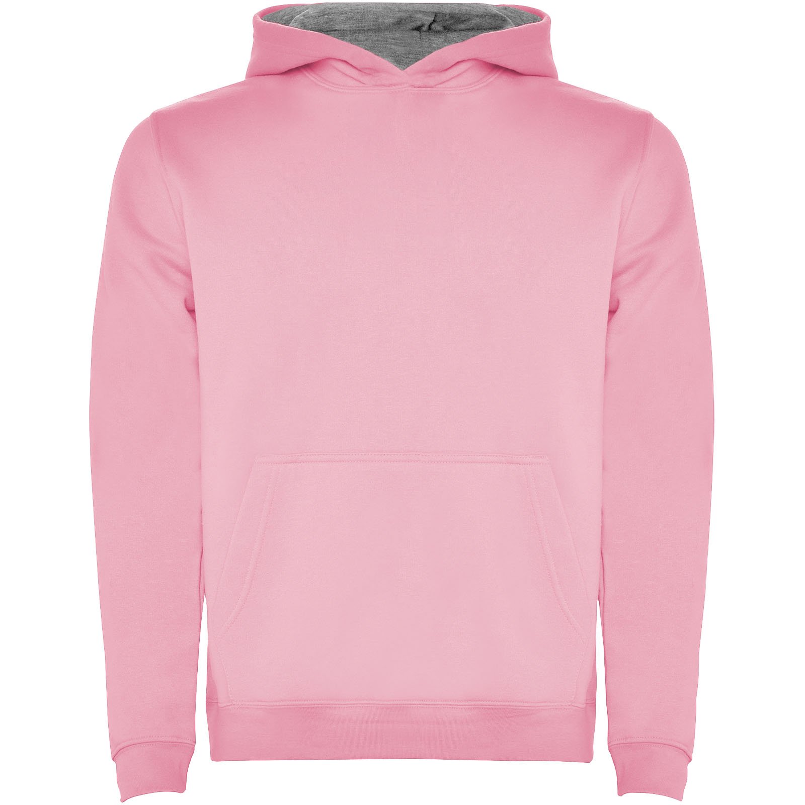 Sudadera con capucha de doble tejido bicolor, cubrecosturas reforzados y bolsillo tipo canguro. Punto canalé con elastano 1×1 en puños y cintura. Etiqueta extraíble. El modelo mide 120 cms y lleva una talla 5/6.
