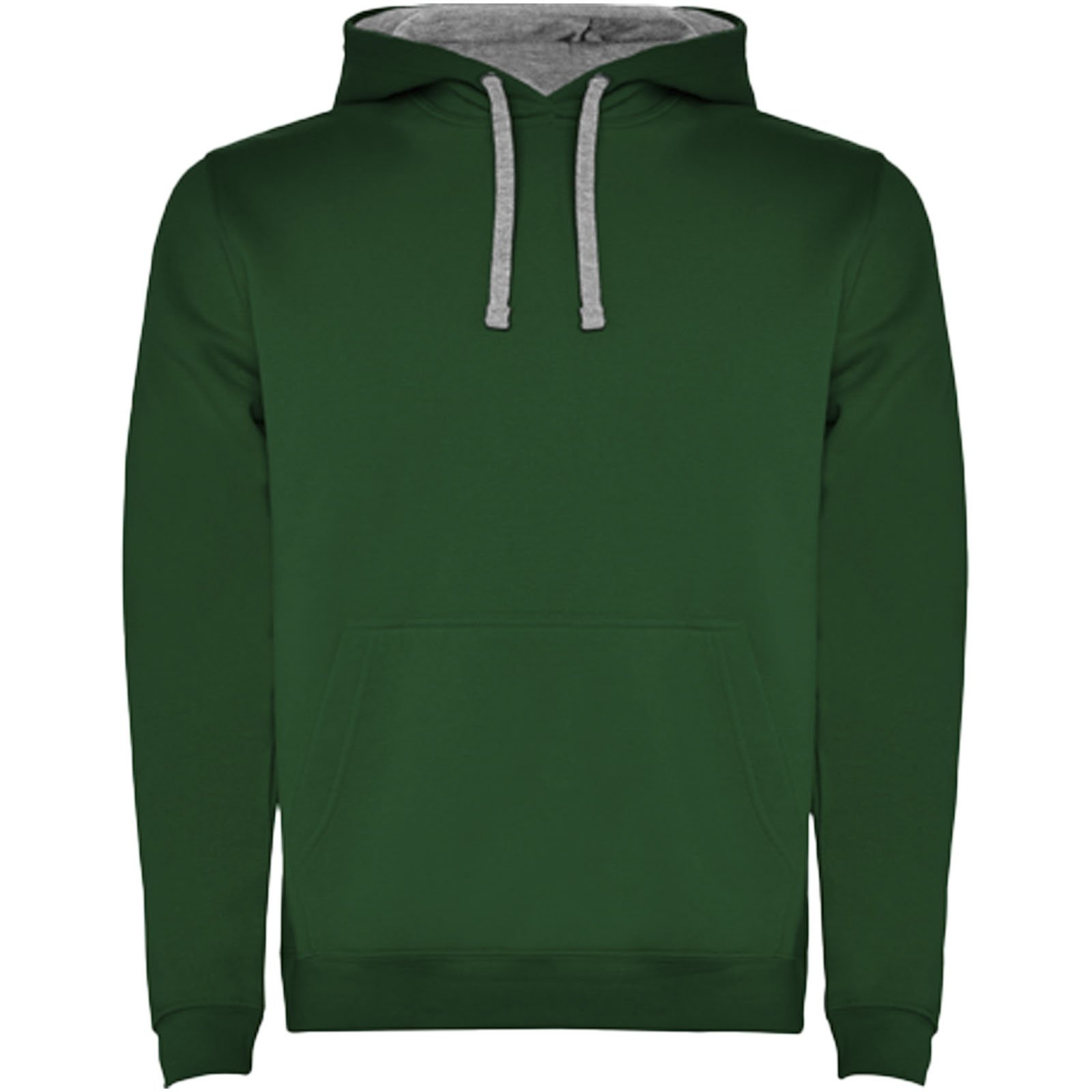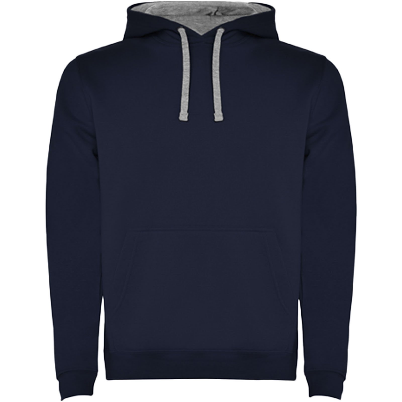 Sudadera con capucha de doble tejido bicolor, con cordón ajustable en contraste, con cubrecosturas reforzado y bolsillo tipo canguro. Disponible en acabado sólido o bicolor. Punto canalé con elastano 1×1 en puños y cintura. Etiqueta extraíble. El modelo mide 185 cms y lleva una talla M.