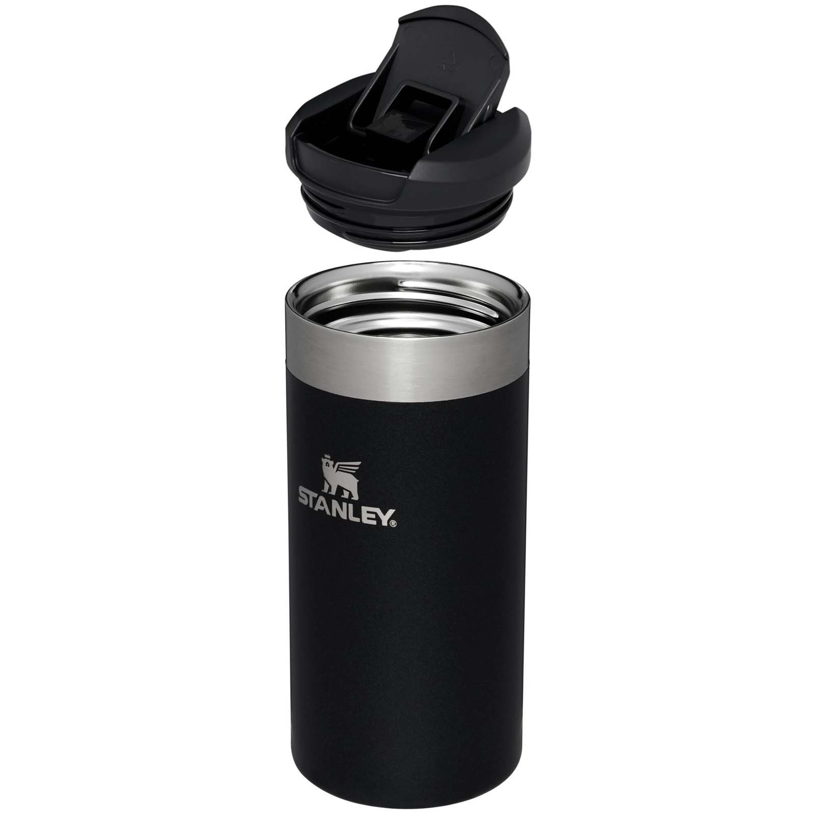 El vaso de viaje de 350 ml y pared doble con aislamiento térmico «Stanley AeroLight™» tiene un diseño ligero que no afecta a la temperatura deseada de la bebida, manteniéndola caliente durante 6 horas o fría durante 8. El vaso es hermético y tiene una tapa con cierre de rosca. Así pues, no tendrá que preocuparse por los derrames cuando meta la botella en la bolsa y se suba al tren de cercanías o comience a hacer ejercicio. Además, el vaso «AeroLight™» es apto para lavavajillas, no contiene BPA y está diseñado para facilitar su limpieza. Se adapta a la mayoría de los portavasos de coche. Los vasos de viaje son un 33 % más ligeros que los vasos de acero inoxidable habituales de «Stanley».